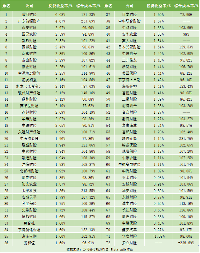 与此同时,蓝鲸财经对已披露二季度偿付能力报表的72家险企进行梳理发现,行业马太效应持续显现:前十家非上市财险公司的保费收入占据了全部非上市财险公司保费收入的接近70%,净利润则占据约九成份额。同时,蓝鲸财经关注到,今年上半年,非上市财险投资收益表现回暖明显,业内预计下半年将对利润表现有进一步支撑作用,但从综合成本率表现来看,中小公司承保端压力不可忽视。
