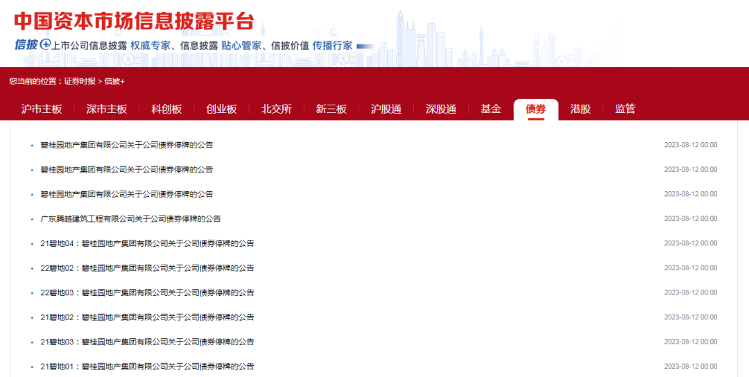 8月12日,碧桂园宣布对旗下多只境内公司债券自2023年8月14日开市起停牌,复牌时间另行确定。(来源:中国经济网)