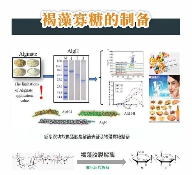 褐藻寡糖(AOS)是褐藻胶通过一定的裂解反应得到的功能性寡糖,具有丰富多样的生物活性,如抗肿瘤、抗炎、免疫调节及降血脂等作用,在医药、保健品、化妆品、动物饲料及植物调节剂等领域具有很强的应用前景。褐藻寡糖的传统制备方式是利用碱液对富含褐藻胶的大型褐藻进行降解,该方法会破坏褐藻中活性成分,同时造成很大的环境污染。而且碱解技术制备的褐藻寡糖、聚合度不稳定,随之带来的就是效果不稳定。