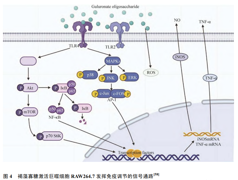 图为AOS可通过抑制 TLR4/NF-κB 和 NOD1/NF-κB 信号通路5.除了上述生物学活性外,AOS 还具有降血糖,降血压、抗哮喘、抗肥胖和神经保护活性。此外, AOS 还可调节细胞生长及胆固醇代谢,防护射 线辐射等。