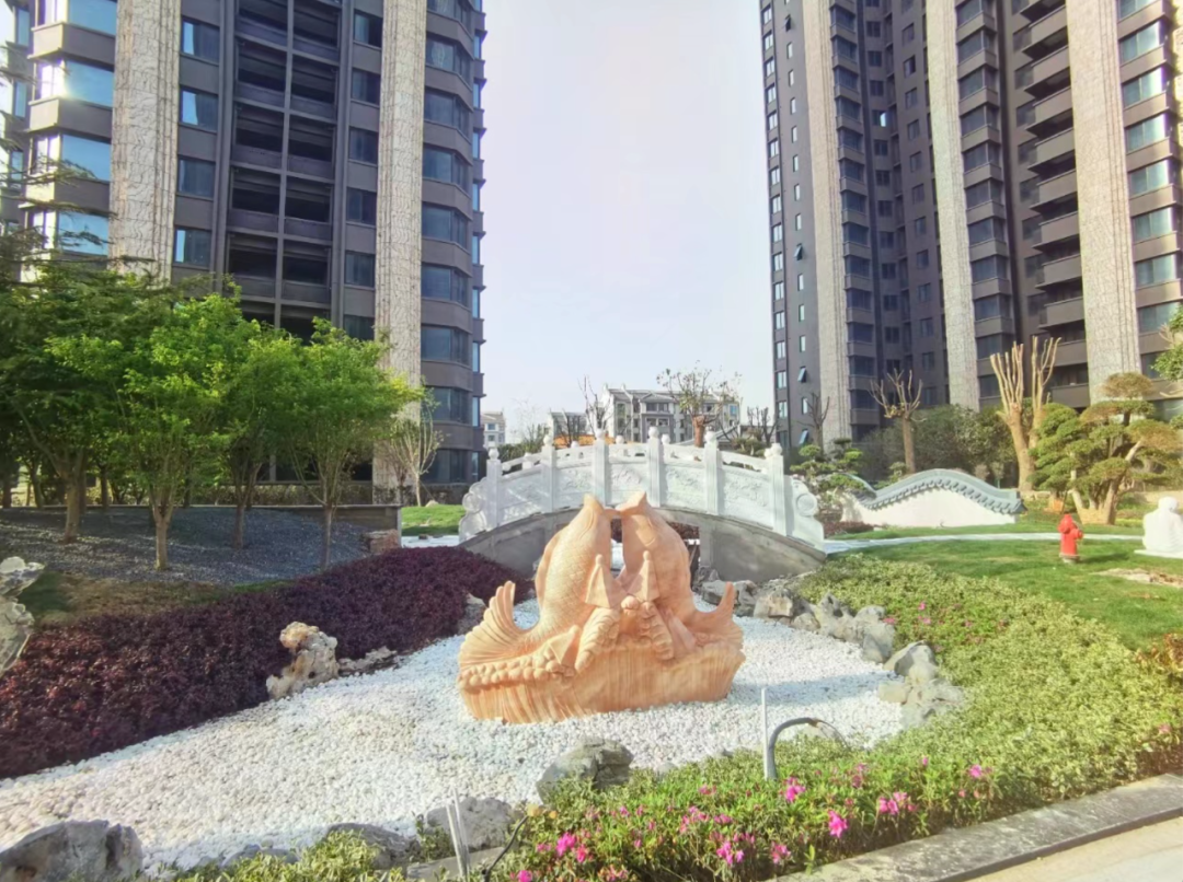 漫步社区,琳琅满目的名贵树种,光滑整洁的景观步道,精心雕琢的汉白玉石拱桥,颇具江南意蕴的六角亭,绿意盎然的阳光大草坪……