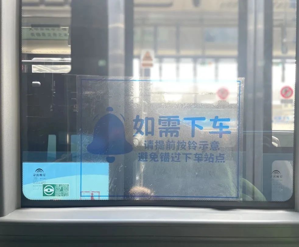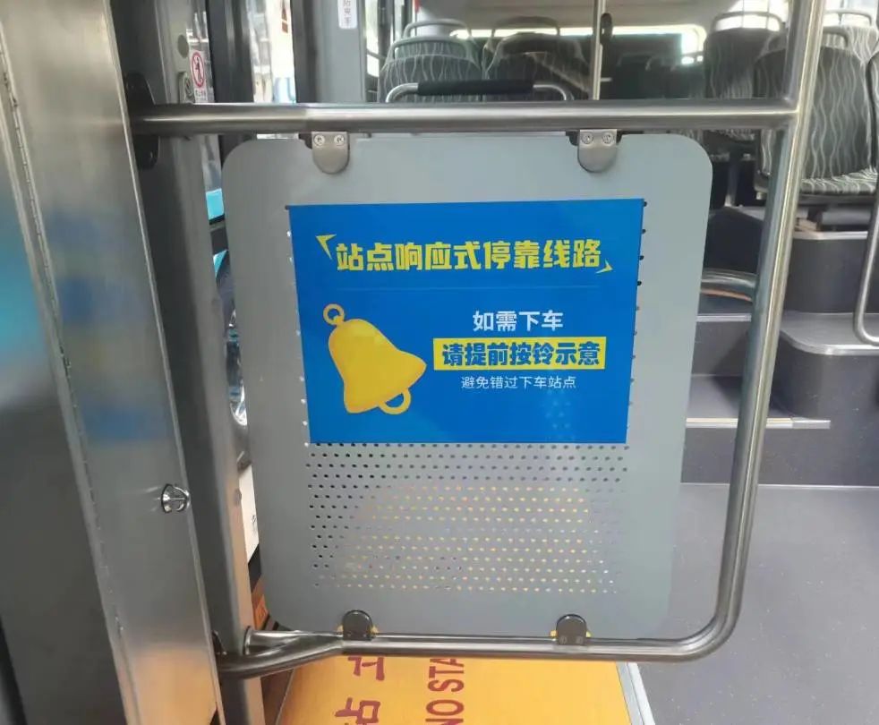 为让市民更好地了解“响应式停靠”公交线路,公司对5条线路沿途站牌进行再设计,将响应式停靠公交站线路显著标注在站牌上,方便市民知晓。同时,在车头、车身及车内明显位置张贴“响应式停靠”提示语,“本线路为站点响应式停靠线路,如需下车,请提前按铃示意,避免错过下车站点”。