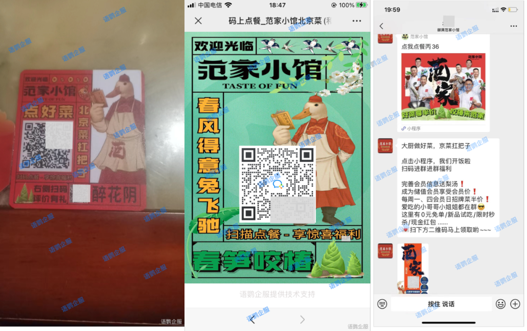 我们在餐厅吃饭时经常会被店员提醒扫码点餐,扫码的步骤一般是添加企微好友-关注门店公众号-进行点餐,这样客户就会进入到门店的私域流量池中。比如说绿茶餐厅,就是通过扫下单码-对公众号进行关注-抽奖-百分百得免费菜品-继续点餐-结账的模式引导线下客户进入自己的私域流量池。通过奖励客户菜品的福利引导客户进入门店的私域流量池,从而实现线上线下的融合营销。