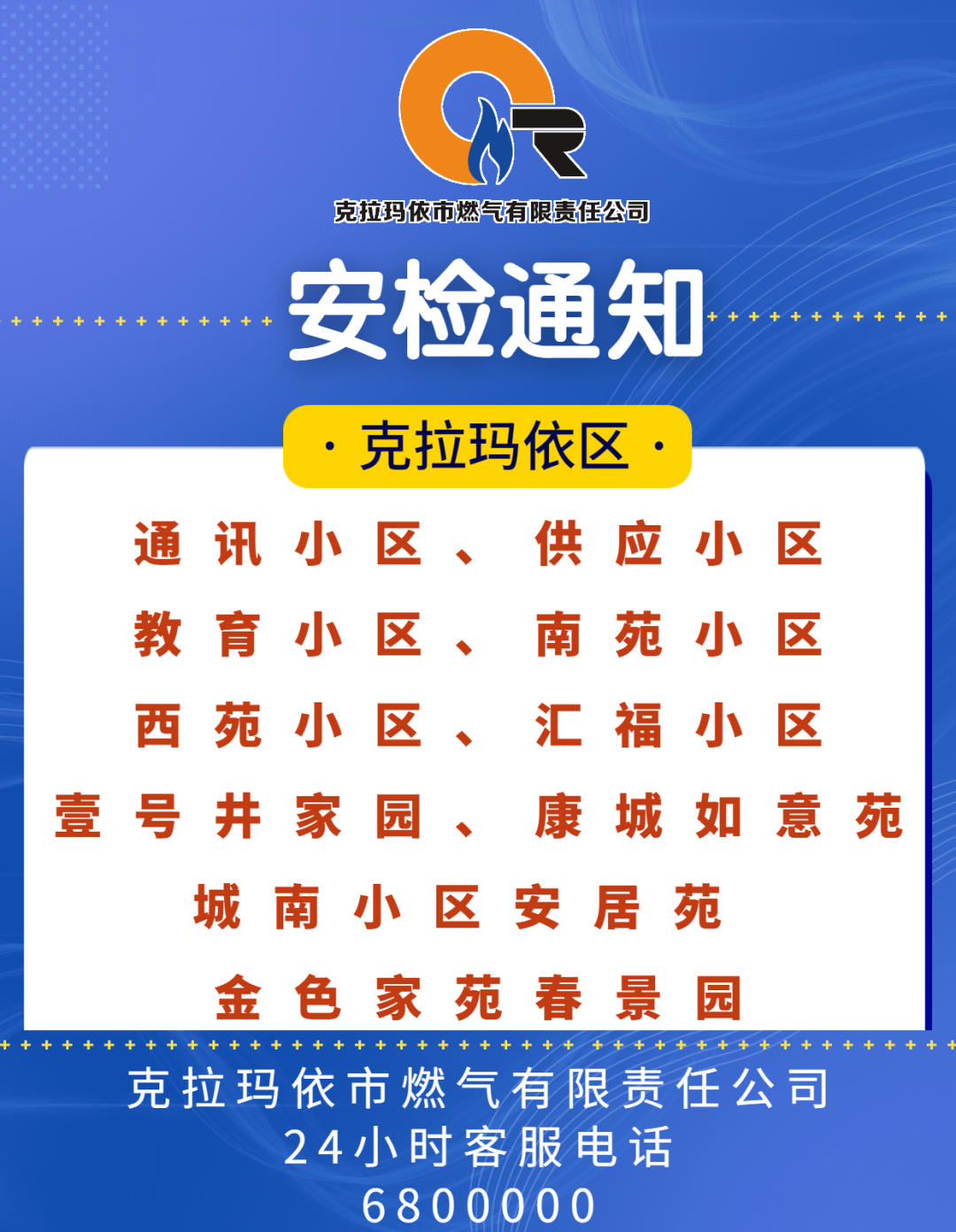 【最新消息】克拉玛依市燃气公司安检最新消息!