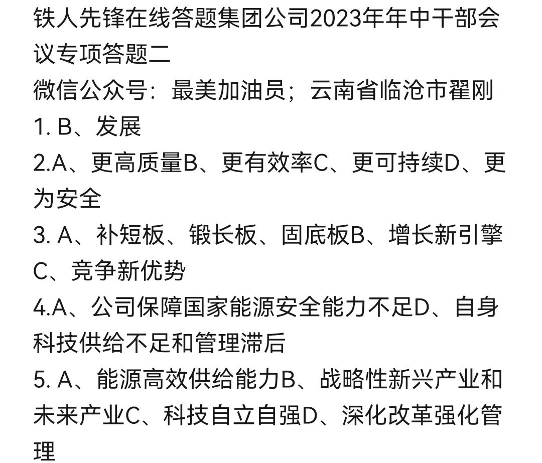铁人先锋在线答题集团公司2023年年中干部会议专项答题二