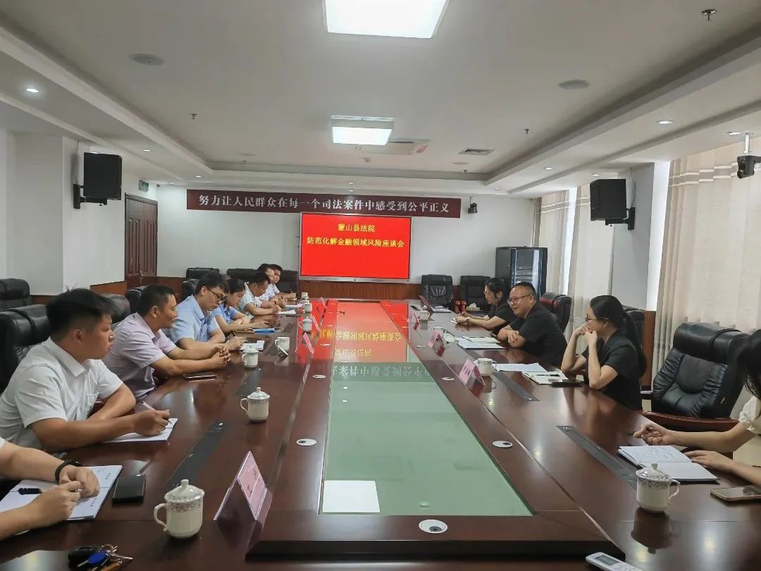 7月5日下午,蒙山县法院召开防范化解金融领域风险座谈会,进一步优化法治化营商环境,有效防范化解金融风险,提升司法服务水平,保障金融业健康发展。