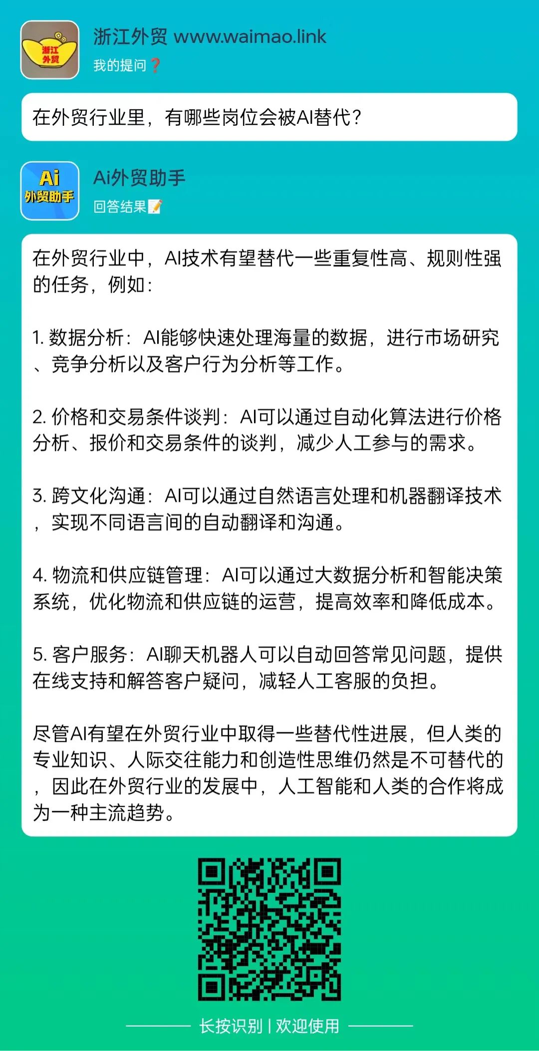 Ai外贸助手:答疑解惑、邮件回复、多语言互译、挖掘关键词、写标题、写开发信、写社媒文案、市场调研!更多惊喜等你体验!