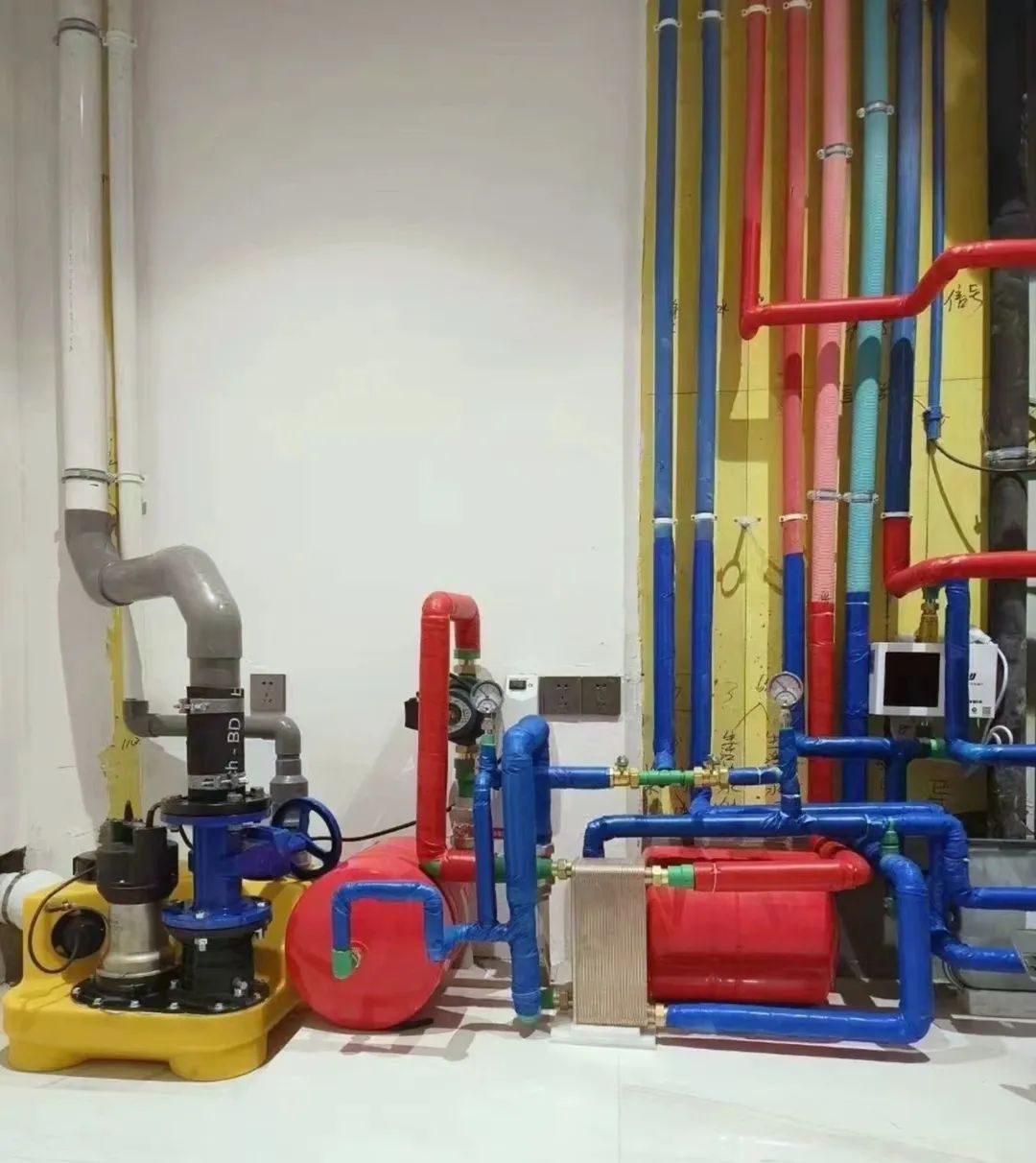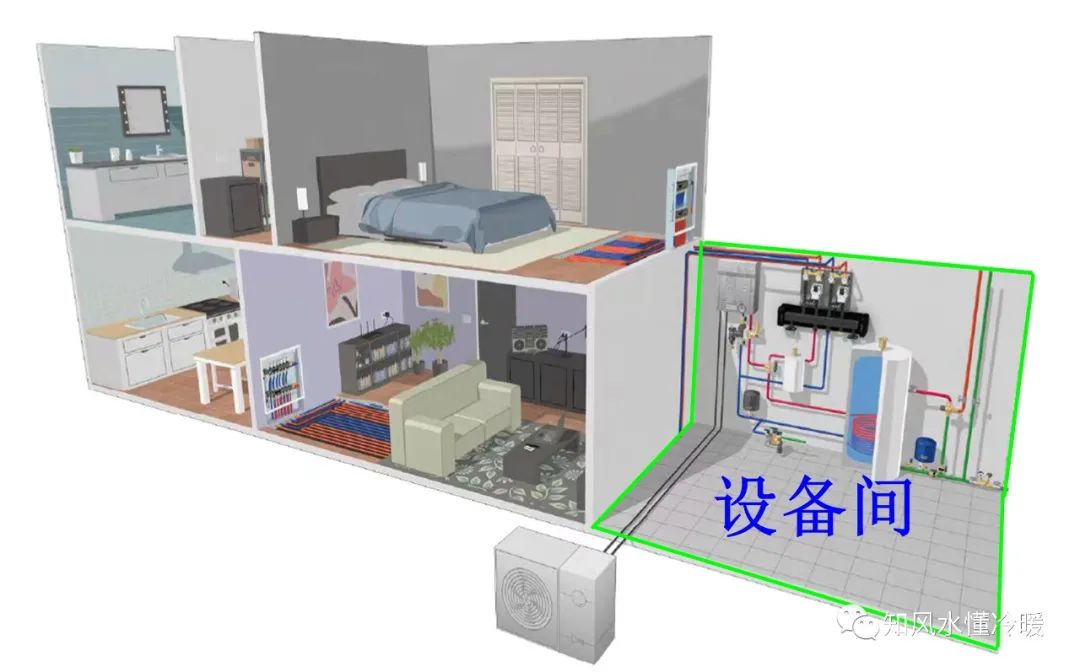 设备间内常年处于恒温状态,减少供冷和供热输送管道因为温度变化造成的能量损耗。并且所有设备集中在一起,减少设备间因管路过长造成的能量损耗。