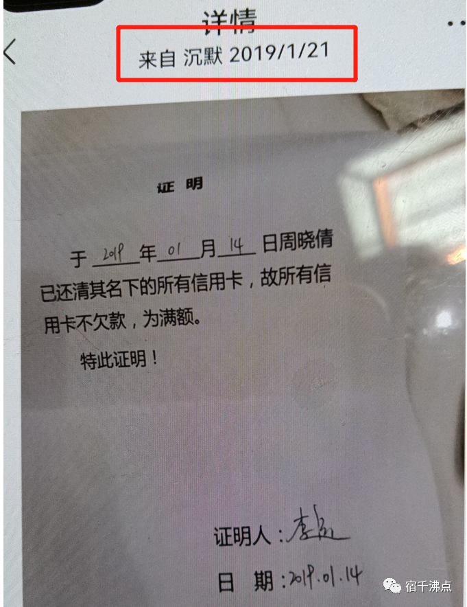 周某某自知生命不久将离开人世,于2019年1月14日写下不欠任何信用卡款项的证明:见图