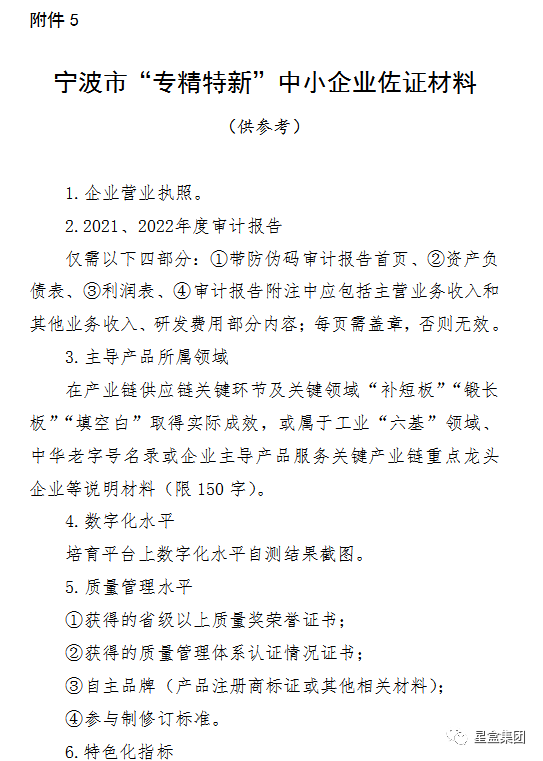 附件5.宁波市“专精特新”中小企业佐证材料(供参考).docx