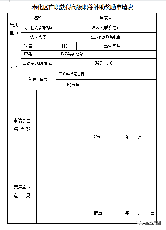 1.《奉化区在职获得高级职称补助奖励申请表》(附件);