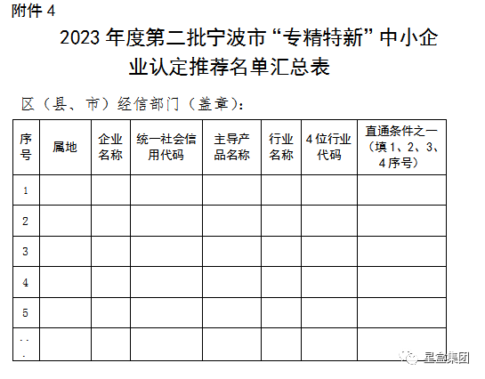 请各地经信部门务必于9月20日前行文上报推荐的《2023年度第二批“专精特新”中小企业认定推荐名单汇总表》(见附件4,盖章纸质版1份、盖章扫描PDF版、可编辑Excel版),企业佐证材料(见附件5,扫描PDF版)报送至我局中小企业与民营经济发展处。