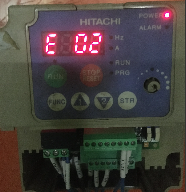 一台日立变频器的引起的报警故障,它是在正常开车的情况下发生的。到达现场之后发现变频器面板显示故障代码E02。