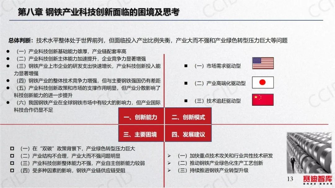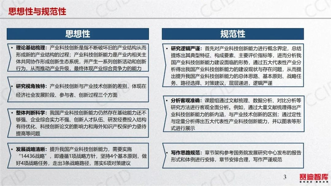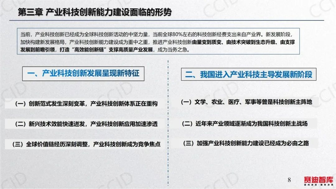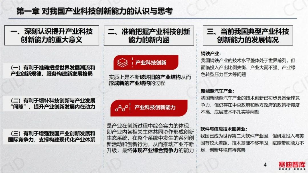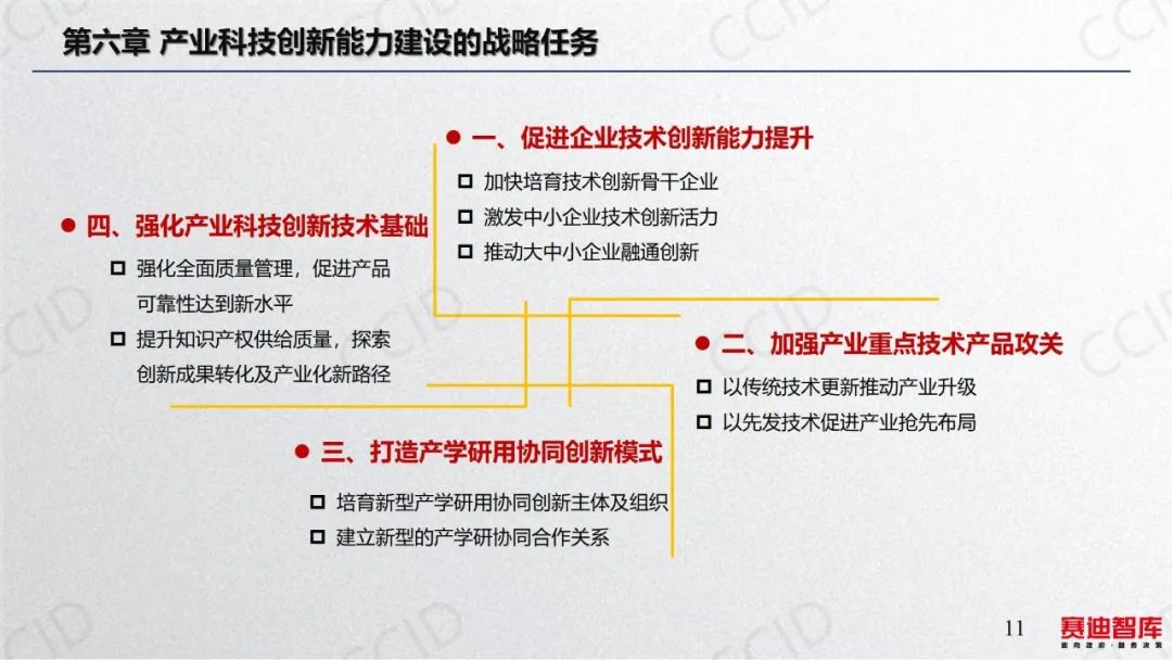 2023年7月31日,在《赛迪研究院研究丛书2023》媒体发布会上,科技与标准研究所研究人员张鹏解读了《产业科技创新能力建设的路径与对策》。本书认为,产业科技创新是真正以企业为主体、市场为导向、企业与各相关主体密切协作形成创新生态系统的能力。提升产业科技创新能力,关键是抓好四大战略任务。一是促进企业技术创新能力提升,推动大中小企业融通创新。二是打造产学研用协同创新模式,培育新型产学研用协同创新主体及组织。三是瞄准产业科技创新需求和基础,有的放矢推进产业关键核心技术攻关。四是强化产业科技创新基础支撑,探索成果转化及产业化新路径。