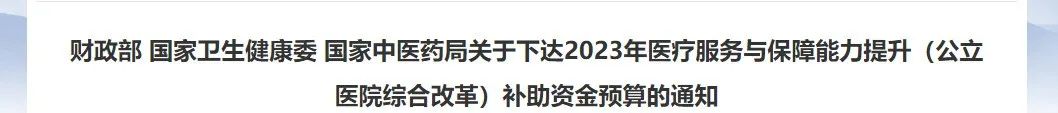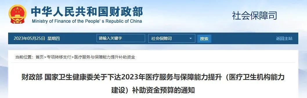 紧接着5月,国家财政部便接连下达了2023年医疗服务与保障能力提升医疗卫生机构能力建设和公立医院综合改革补助资金,两笔共计高达152.5亿元!