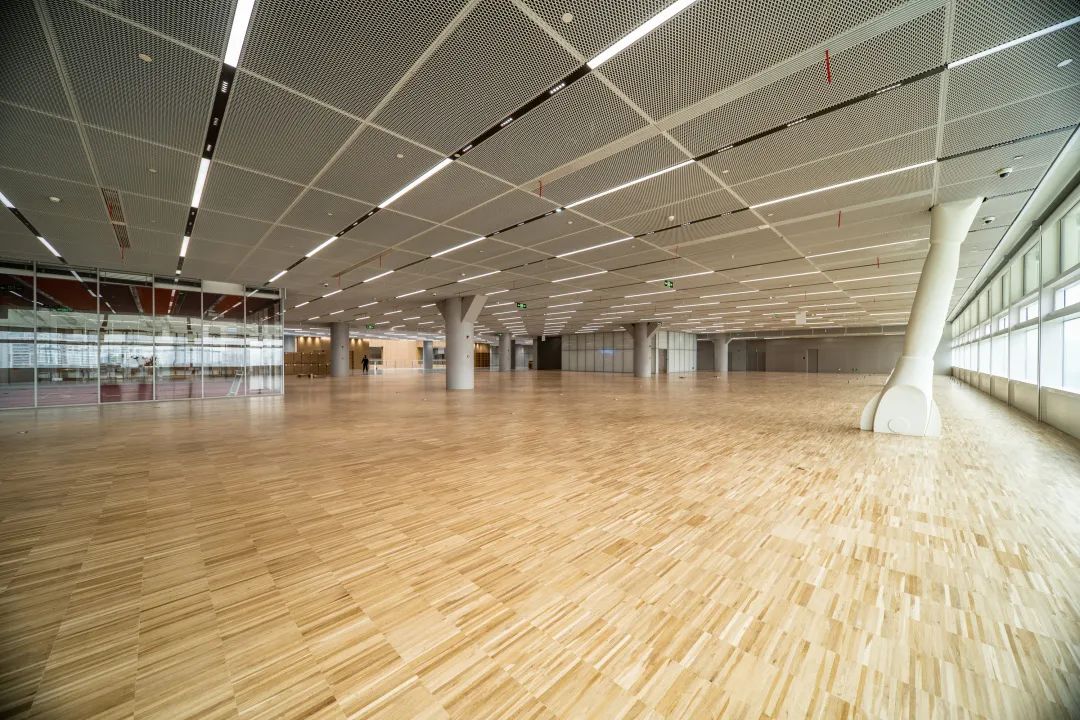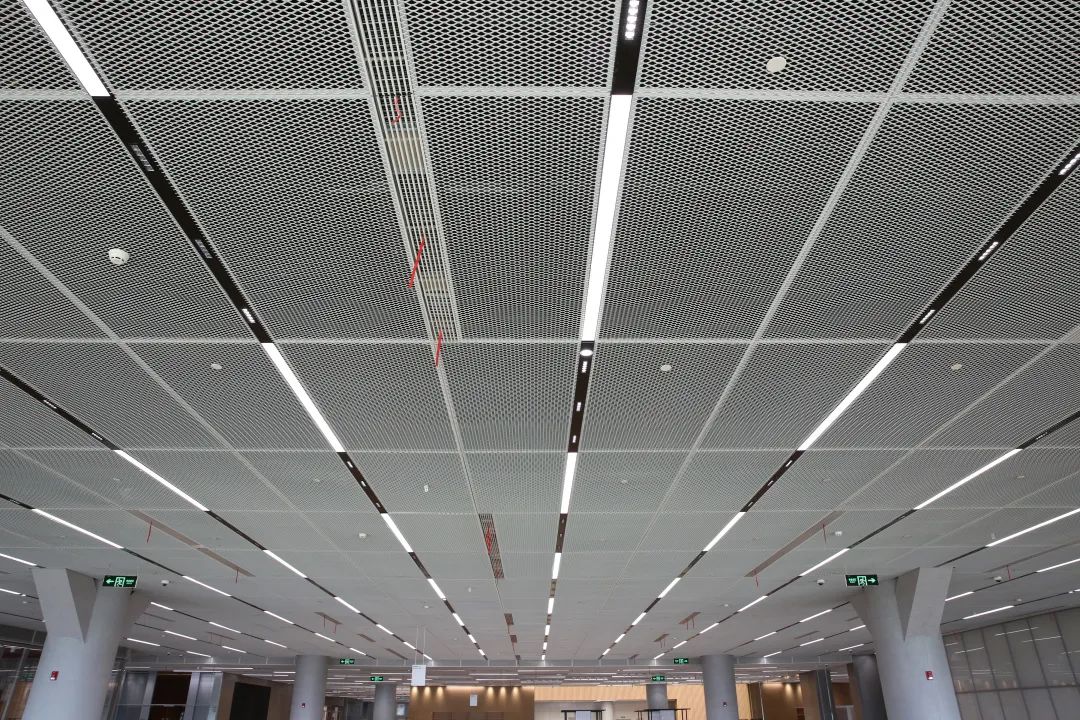 在布置阅览区等大空间吊顶点位时,项目部充分考虑到图书馆对于观感协调的高要求,顶面风口、烟感等点位成排成线,与装饰吊顶造型紧密结合,营造出美观大气、干净透亮的观感。