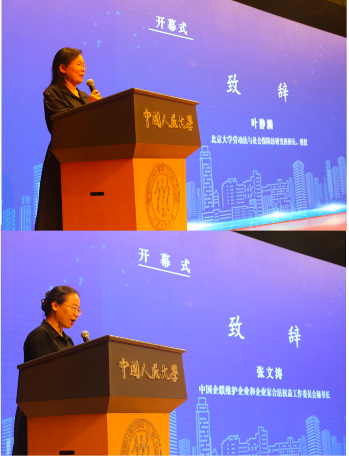 中国企联维护企业和企业家合法权益工作委员会张文涛秘书长和北京大学劳动法与社会保障法研究所所长叶静漪教授代表其他主办方致辞。她们表示,此次论坛是对新时代企业劳动用工合规与争议预防的积极回应,对实现劳动关系和谐发展具有重要作用,希望各方主体共同助力和谐劳动关系构建,推进劳动关系在法治轨道上运行。
