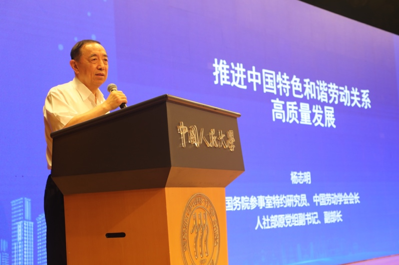 随后,两位特邀嘉宾进行了主旨演讲。国务院参事室特约研究员、中国劳动学会会长杨志明以《劳动关系新形势、新特点、新挑战、新应对》为题做主旨演讲。他指出,高质量发展是中国式现代化的底色,创新能力是构建中国特色和谐劳动关系高质量发展的关键性因素,并对“拥抱数据,创新无限;拥抱和谐劳动关系,发展无限;拥抱高质量发展,未来无限”进行了详尽阐述,鼓励在现代化进程中不断创新以应对劳动关系中的新挑战。