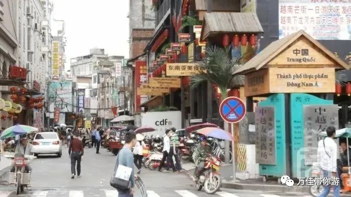 都是非常好的去处。街道两侧房屋上都插着五星红旗, 其中有许多商铺都售卖着越国特产,也有许多越南人在摆着摊卖着越南的小吃与传统特色商品。 (自由活动时间无导游和车陪同)