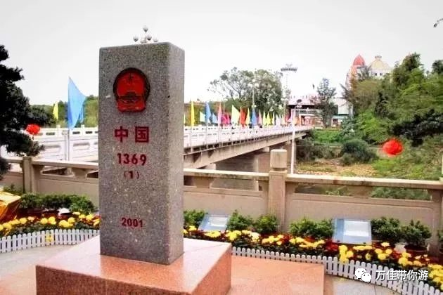记载着中越两国的历史濸桑,大桥全长111米,桥中间有一条斑马线,是中越大桥管理线,“跨一步而出国”在这里成为现实。两国的国旗分别在大桥的两端矗立飘扬,正如两兄弟一刻不离的在挥手致意。