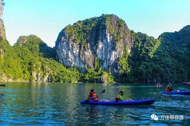在指定区域还可以游泳,登上岛屿的山顶俯视下龙湾海上桂林全景,拍摄您心意的美照。