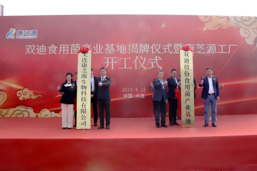 2023年4月15日,双迪食用菌产业基地揭牌仪式暨康芝源工厂开工仪式隆重举行。大连市金普新区商务局副局长季海,珍奥双迪健康产业集团董事长兼首席执行官、双迪股份董事长刘洪,中国保健协会食物营养与安全专业委员会法规标准主任朱凌云,大连双迪科技股份有限公司营销总裁伊启明,珍奥双迪健康产业集团首席研发专家、双迪食用菌产业基地首席顾问杜晓鸣,大连双迪科技股份有限公司总裁助理冯丽丽,大连双迪食用菌产业健康顾问王辉,以及众多消费者家人参加仪式。