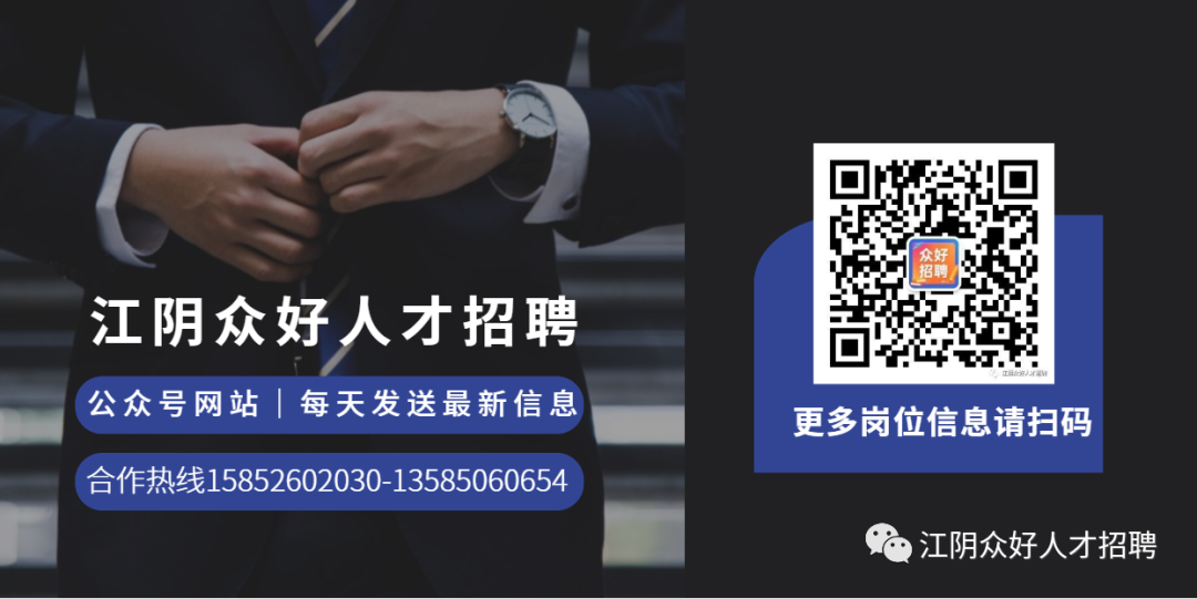 每天接收最新招聘信息,请关注江阴众好人才招聘公众号,按住不放,关注即可↓↓↓