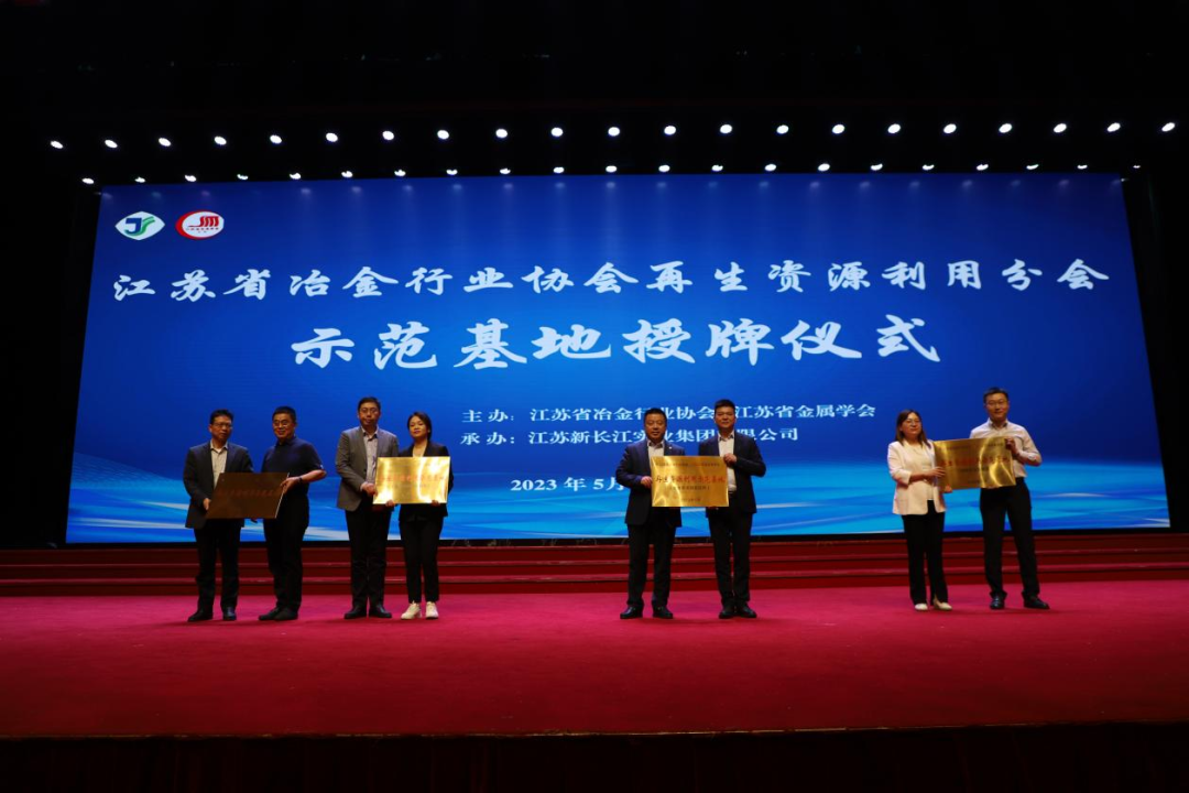 赵明还宣读了《关于授予新长江等四家企业“江苏省冶金行业协会、江苏省金属学会再生资源利用示范基地”的通知》,并举行了授牌仪式。有关领导为江苏新长江实业集团有限公司、江阴市德胜欣再生资源有限公司、江苏华宏科技股份有限公司、百菲萨(中国)投资有限公司四家企业授予江苏冶金行业协会、江苏省金属学会再生资源利用废船拆解循环利用、合金类废钢应用、废钢加工装备制造、钢铁除尘灰处置示范基地。