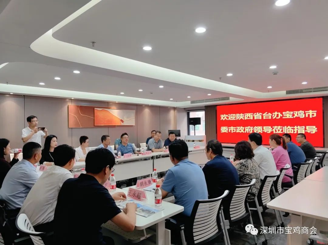 8月9日上午,宝鸡市委常委、统战部部长高宏真;陕西省台办四级调研员张洁;宝鸡市驻深圳办事处主任翟莉;宝鸡市委统战部班子成员、二级调研员毛建录;宝鸡市经济合作局副局长闵东;宝鸡市台办三级调研员王志昊;宝鸡市渭滨区委常委、统战部部长胡永康;宝鸡市岐山县委常委、统战部部长王永超;宝鸡市陇县县委常委、统战部部长程波平;宝鸡市麟游县委常委、统战部部长李炜;宝鸡市渭滨区招商局干部方小娥、宝鸡市驻深圳办事处招商科科长徐雁、挂职干部金卓一行莅临深圳市宝鸡商会开展了“大走访、大座谈”考察调研活动,与我会企业家代表就宝鸡市及各县区资源优势、投资环境开展了深入的交流与探讨。本次活动由韩金龙会长携同本季度轮值会长吕宗利,执行会长兼秘书长雷周岐、常务副会长杜龙、贾宝刚、蔺永刚、执行秘书长李娜、副秘书长兼会员部长姚丽、副秘书长兼联络部长袁琦、副秘书长兼宣传部长张宝梅等参加了交流座谈。