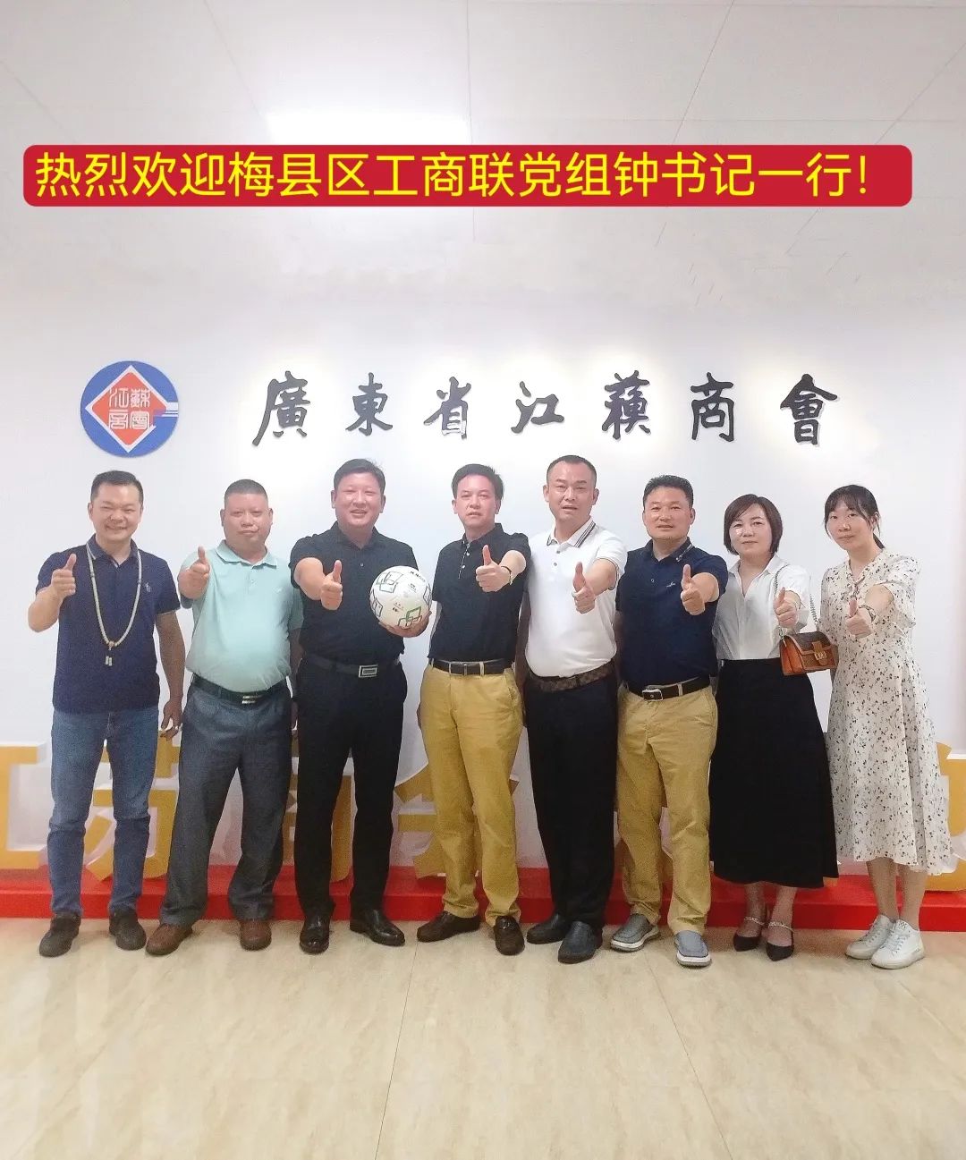 热烈欢迎梅州市梅县区工商联党组书记钟加练、傅其杉副主席,梅州客迁食品有限公司温董事长,广东天广圆体育管理有限公司廖唯成董事长等一行莅临我会参观交流,指导工作!我会张强常务副秘书长兼办公室主任热情接待了来访的一行领导。就如何加强互助,资源共享更好服务企业等内容,进行了广泛而深入的探讨。