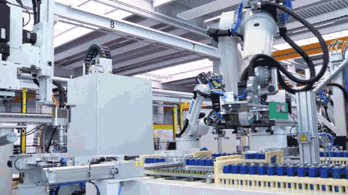 在宁德时代的车间内从自动搬运材料到为设备喂料100%实现了自动化。