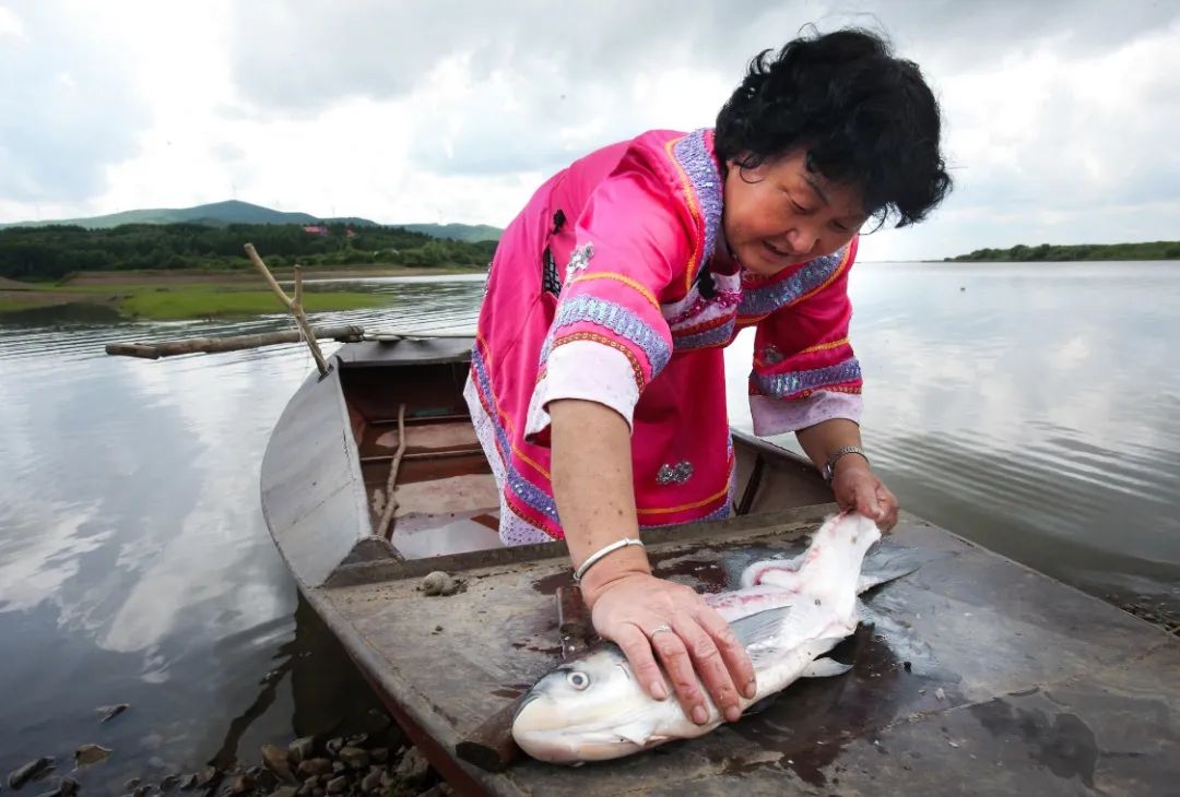 Hezhen people are mainly distributed in Raohe County and Fuyuan County in Heilongjiang Province. Living along the river, Hezhen people mainly live by fishing—they catch fish, eat fish, and use fish skins to build houses, build skiffs and make clothes. Fish-skin products are made from the skin of northern cold water fish. Its skin has certain thickness and toughness, which is relatively wear-resistant and suitable to use in production and daily life. Fish skin culture has a long history. Although many ethnic groups have had fish skin cultures in history, only the Hezhen people in Jiejinkou Village, Tongjiang City, Heilongjiang Province have inherited it since the Qin Dynasty.