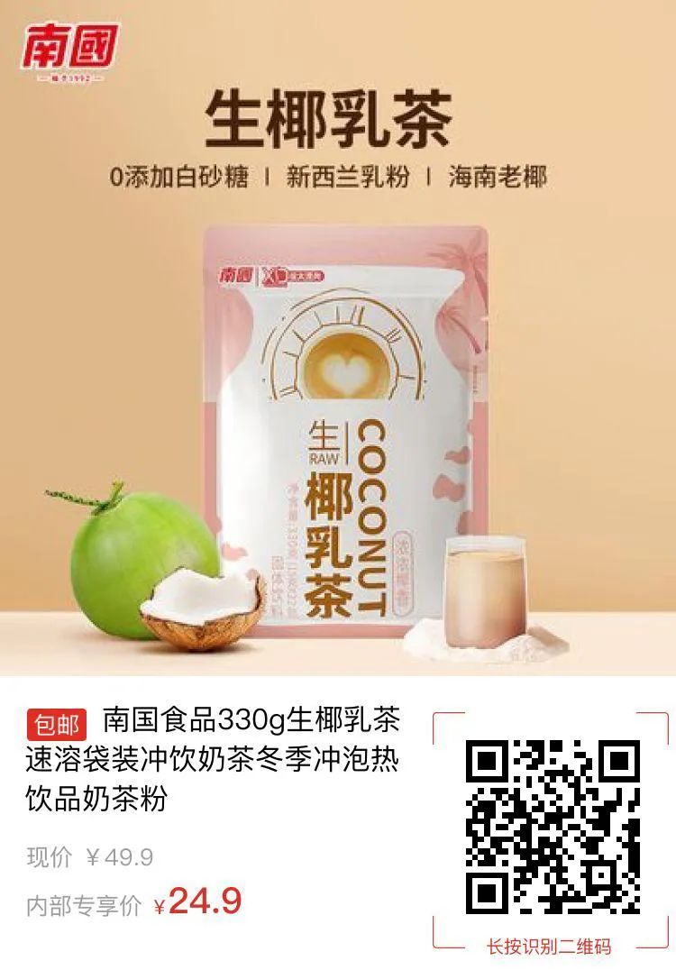 【包邮】南国食品330g生椰乳茶速溶袋装冲饮奶茶冬季冲泡热饮品奶茶粉