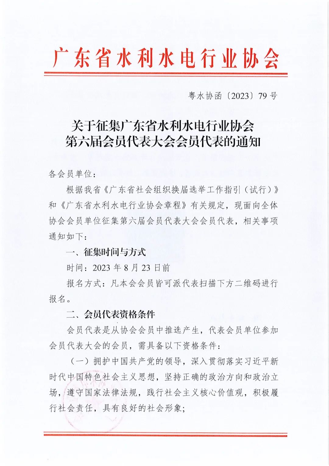 关于征集广东省水利水电行业协会第六届会员代表大会会员代表的通知