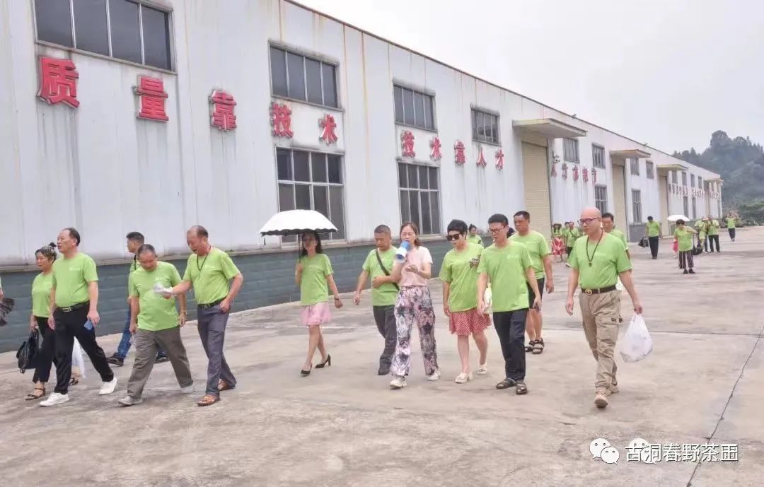 7月18日上午,各路商界大咖在总经理卢振兴等高管的陪同下,驱车前往茶庵铺镇松阳坪茶园、太平铺卢家湾厂部基地与工厂进行了全方位的考察,对夷望溪两岸山青水秀的自然风光特别是对一垅垅长得青翠欲滴的大叶茶赞不绝口,不约而同的举起手机一通狂拍,留下永久的珍藏。