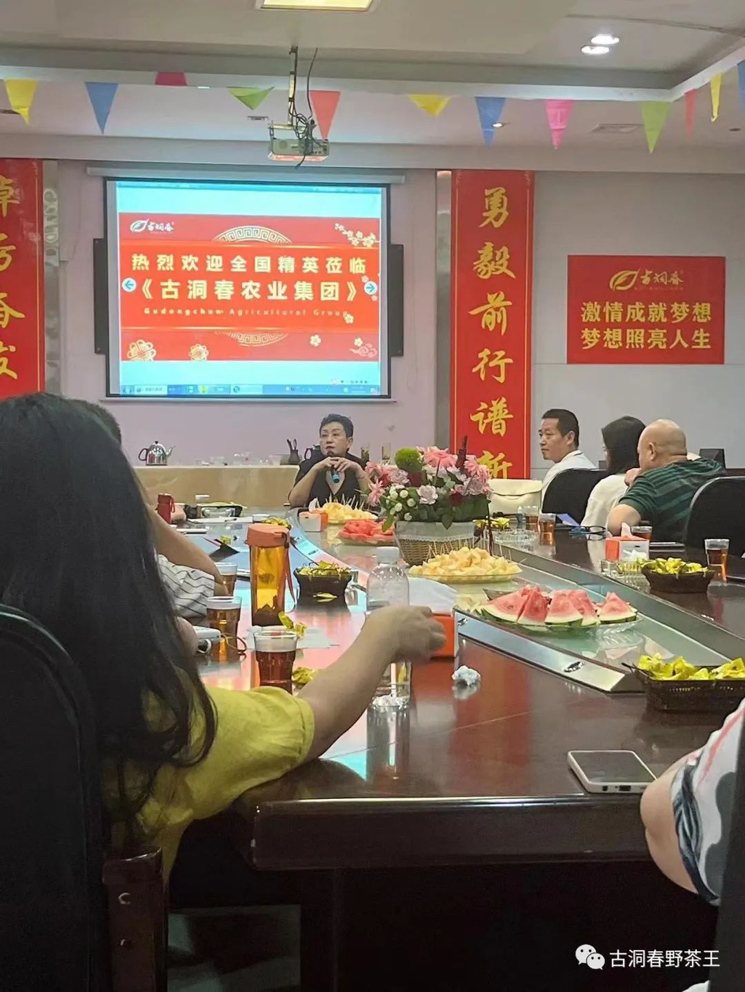 茶艺表演后,与会者全体起立鼓掌热烈欢迎,古洞春农业集团公司董事长唐春仙满面春风的与各位旧雨新知亲切会见,简要回顾了始于清道光十九年(1839年)百年字号古洞春两个世纪七代茶人的执着,重点介绍了古洞春茶业有限公司27年来的创业征程,着重推介了古洞春“野茶王”不断创新的品牌效应,拟在上市的康庄大道上稳步前行,古洞春是您理想的合作伙伴,更是您施展才华的宝地,机遇就在您的手中,真诚欢迎各位新老朋友精诚合作,互惠互利,共同致富。