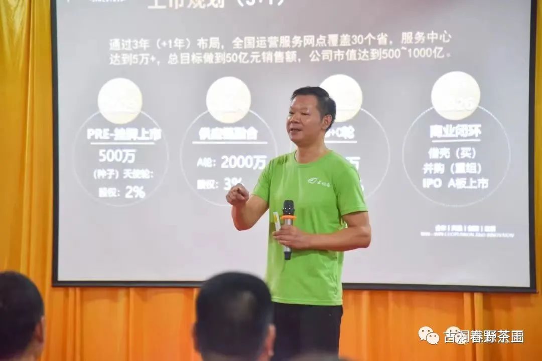 嗣后,徐远明就大叶茶科技战略价值远景进行了展望,对业务板块(运营模式、盈利模式)、市场规划(实施路径、财务指标、年度目标规划)、战略规划(上市规划、茶产业供应链商业闭环)和价植远景(未来规划、古洞春生态赋能、产业链延伸)四个方面予以了详细的阐述,通过共创、共享、共赢,不仅能够实现共同富裕的目的,还可参与到解决行业的就业和民生问题之中。