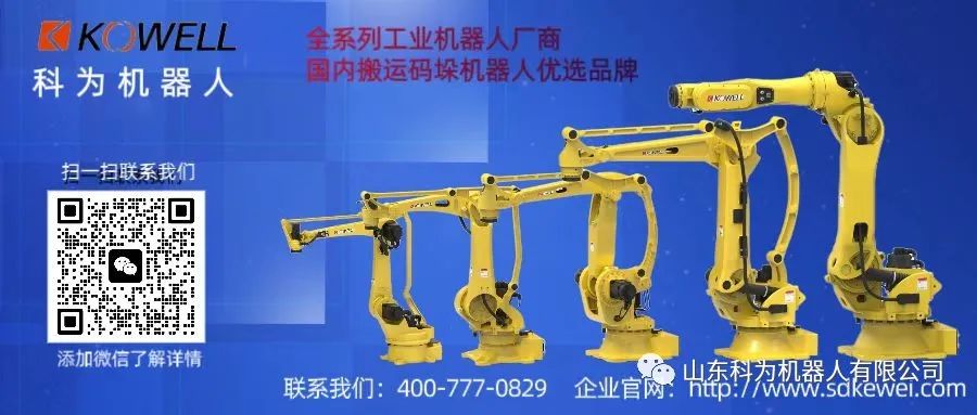②旋转关节式机器人:码垛机绕机身旋转,包括四个旋转关节:腰关节、肩关节、肘关节和腕关节。这种形式的码垛机是通过示教的方式实现。即操作员手持示教设备,控制机器人按规定的动作而运动,然后运动过程便存储在存储器中,以后自动运行时会根据存储记录再现运动过程。这种机器人机身小而动作范围大,可同时进行一个或几个托盘的同时码垛能够灵活机动地对应进行多种产品生产线的工作。