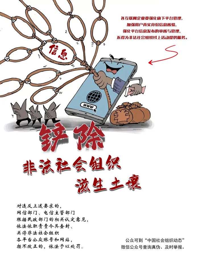 张鹏秘书长首先传达了民政部会同多部门联合印发的《关于铲除非法社会组织滋生土壤 净化社会组织生态空间的通知》精神,该《通知》以列举的方式提出了倡导性要求和禁止性规范。 “六不得一提高”涵盖了非法社会组织开展活动所需的必要条件、必要支撑和养分来源,是打击整治非法社会组织的精准武器。