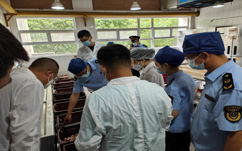 为进一步加强学校食品安全监管,压实落细食品安全“两个责任”,防范化解风险,上海市杨浦区市场监督管理局结合学校食堂承包经营企业食品安全专项检查、夏季食品安全风险隐患排查等重点工作,由副局长徐志安带队,对区内3所高校食品安全开展检查指导,局食品监管科、食品协调科、五角场市场监管所、四平市场监管所负责人陪同检查。