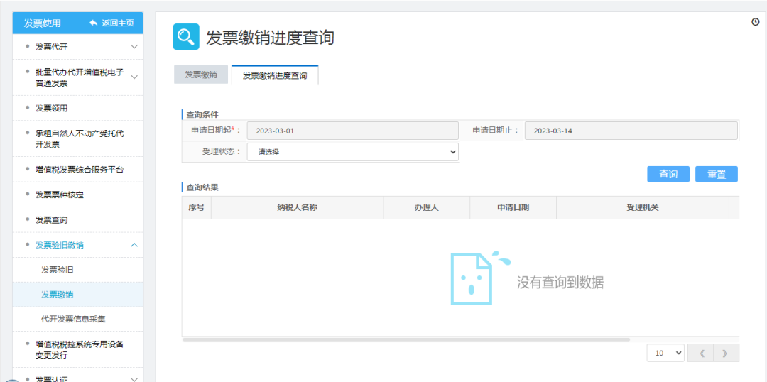 发票缴销进度查询可查询申请事项办理进度。