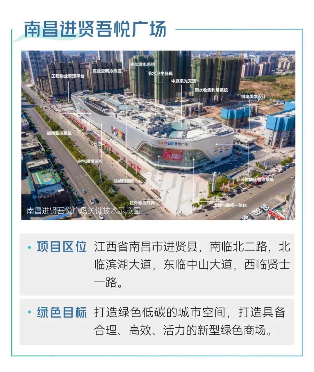 2023年上半年,包头昆区吾悦广场、南昌进贤吾悦广场、贵港港北吾悦广场3大新城商业项目相继通过国家2019版绿色建筑认证,分别成为内蒙古首座、江西省首座、广西省首座获此殊荣的项目,见证了新城在绿色低碳领域的持续耕耘拓新,也为2023年「绿色建造蓝图」再添浓重的一笔。