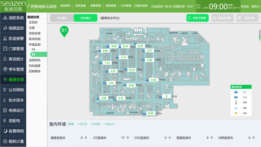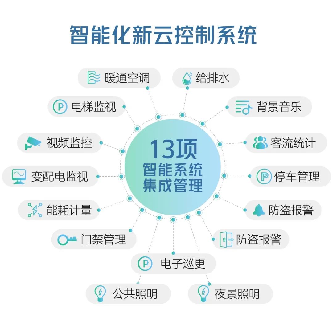 新城研发的智能化新云控制系统(以下简称“新云系统”)在本次三座吾悦广场绿色认证的推进中,起到了举足轻重的作用。该系统通过建立集中控制平台,将13项智能设备系统的控制管理集成在一个管理界面上,从而实现“降低人工成本”、“保证运行品质”、“降低运行能耗” 的目标。