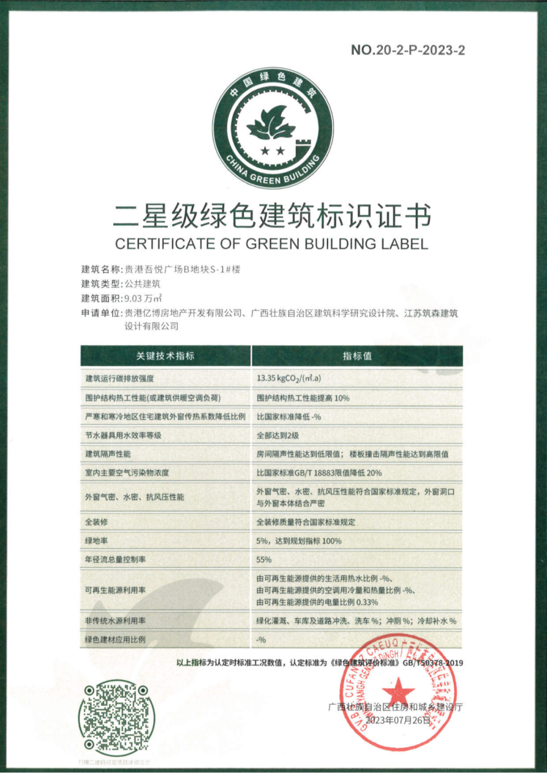 吾悦广场绿色建材产品认证证书