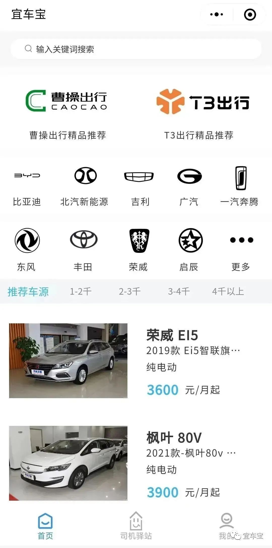 宜车宝,一个深耕网约车行业多年,为许多想开网约车的司机朋友找到了合适的网约车服务平台。宜车宝不仅与T3等各大网约车平台深度合作,还与各平台的城市车辆运营管理公司开展租车合作,微信搜索“宜车宝”小程序,车辆月租金等信息一目了然。