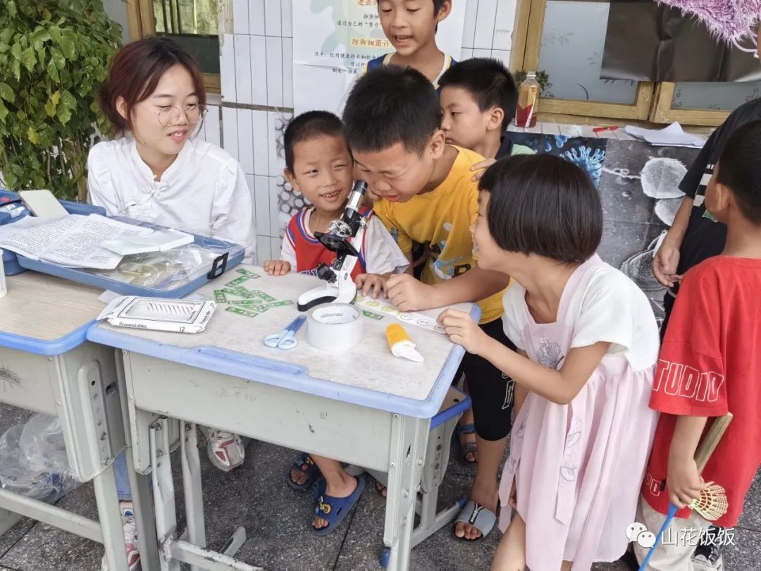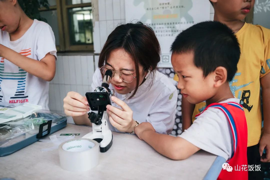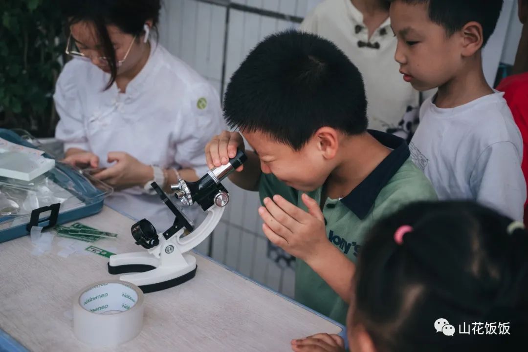 “我们无法用肉眼看清细菌和病毒,让我们一起借助显微镜来看看吧!”孩子们在老师的指导下通过显微镜观察玻片,窥见了方寸中的“另一个小小世界”。