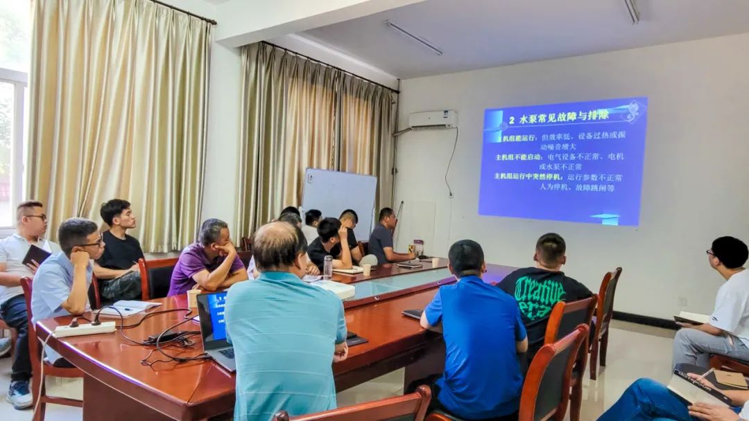 3.禹门抽黄改造工程建设管理办公室组织开展“泵站运行管理”技能培训。本次培训从泵站运行实际需要出发,围绕水泵气蚀、水泵常见故障与排除等方面进行讲解。通过本次培训,加深了职工对泵站机电设备的认识,业务能力得到了进一步提升,为今后做好禹门抽黄运行管理工作打下了坚实的基础。