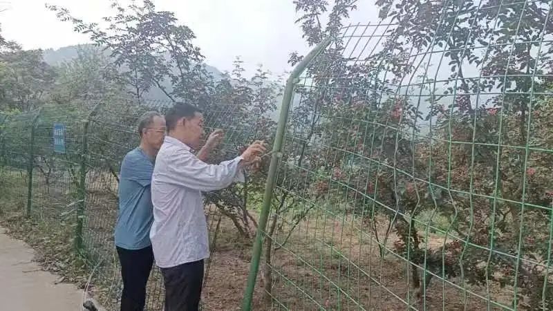 2.薛峰水库管理处人员巡查薛峰水库大坝周边,修补破损围网。