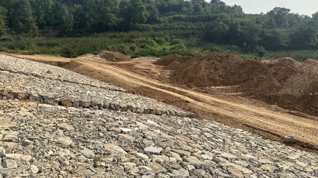 累计完成:溢洪洞清淤1090m³,锚筋安装525根,钢筋制安18.3t,C25混凝土浇筑153m³,高强聚合物砂浆修补140㎡;溢洪洞上方边坡土方清表600㎡,土方回填141m³,C20砼压顶30m³;溢洪洞进口C20混凝土挡墙浇筑96m³,土方开挖200m³,土方回填100m³;背水坡清表剥1058m³,大坝填筑21809m³,褥层排水1101.15m³,砂砾石铺设1864m³,M7.5浆砌石108m³,干砌块石958m³,DN100PVC花管铺设648m;施工道路修筑3.6km,施工场房修建400㎡。