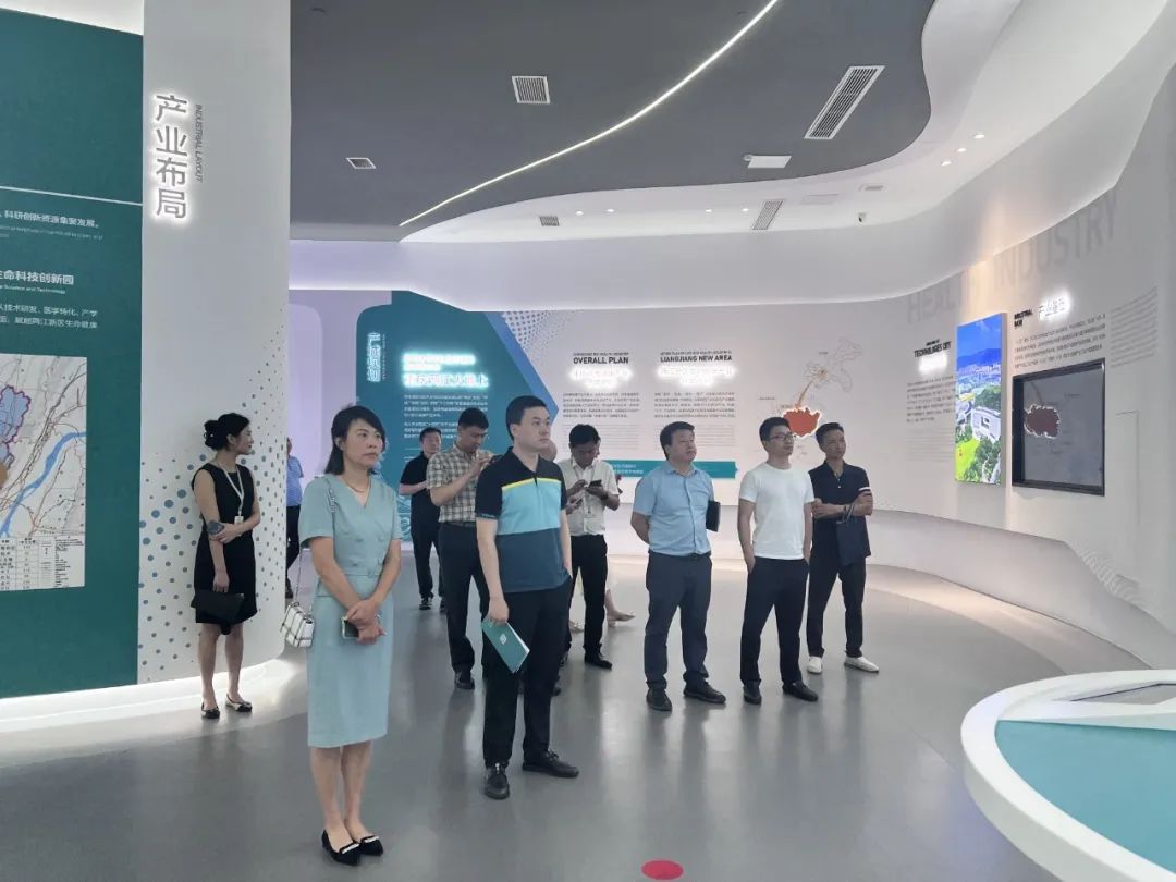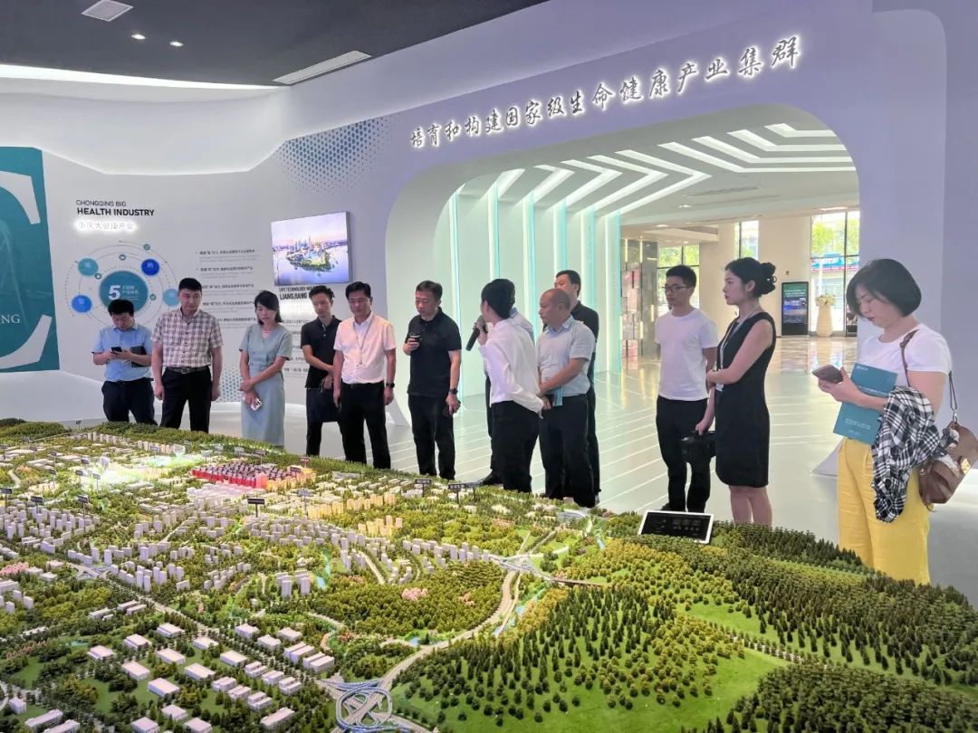 考察团一行先后参观了两江生命科技城展厅、重庆铂而斐细胞生物技术有限公司、迪纳利药物一致性评价中心,并在大地生命科学园咖啡厅进行座谈交流。